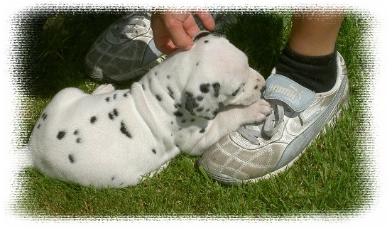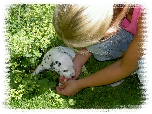 Loona war 4 Wochen alt wie ich sie das erste Mal in Wuppertal besuchte. Es war sofort Liebe auf den ersten Blick und ich wußte gleich, ich wollte diesen Hund und keinen anderen. Der Schelm saß ihr schon damals im Nacken wie man auf einigen Bildern wirklich gut sehen kann. Diejenigen die Loona kennen wissen, dass sich das bis heute nicht geändert hat. Sie ist und wird einfach immer meine kleine Prinzessin bleiben, die einem manchmal aber auch ganz schön auf der Nase herum tanzen kann.