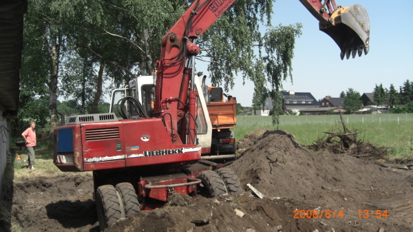 Ja was lange wärt, wird endlich gut heisst es doch so schön und ich kann bestätigen, daran ist was dran. Über ein halbes Jahr musste ich auf meine Baugenehmigung für meinen eigenen kleinen Stall warten. Es hat uns viel Mühe und vor allem einiges an Nerven gekostet aber nun kann es endlich bald richtig losgehen. Diese Gelegenheit möchte ich einmal nutzen um mich bei allen fleißigen Helfern bedanken, die es mir überhaupt möglich gemacht haben, mir meinen Traum zu erfüllen. Danke an euch alle, ihr seid Spitze Jungs!!!! Um euch einmal einen Eindruck zu verschaffen wie es in diesem halben Jahr zuging und was wir alles geschafft haben, zeige ich euch mal ein paar Bilder von Beginn bis jetzt.....! Baggern....